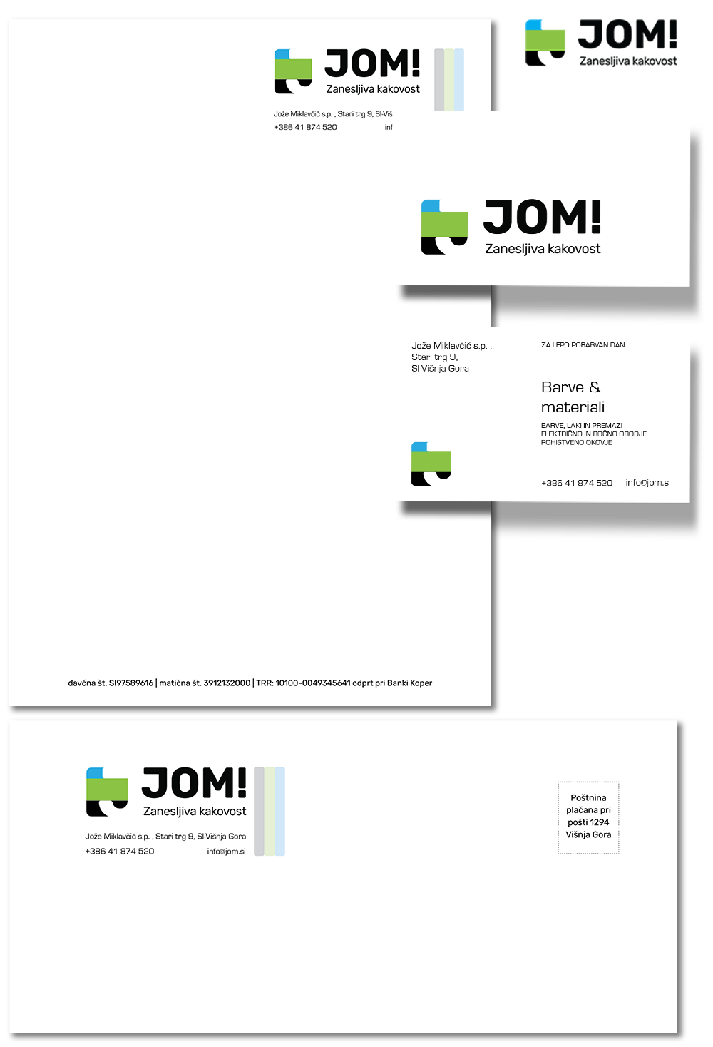 Oblikovali smo ključne vizualne materiale, vključno z novim logotipom, dopisnim listom, vizitko in kuverto.