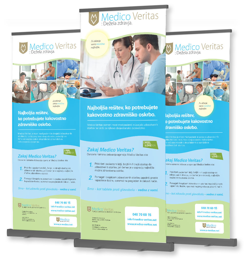 Oblikovali smo roll - up bannerje za dogodke in čakalnice, ki so vizualno izstopajoči, z jasnim sporočilom in prepoznavno identiteto.
